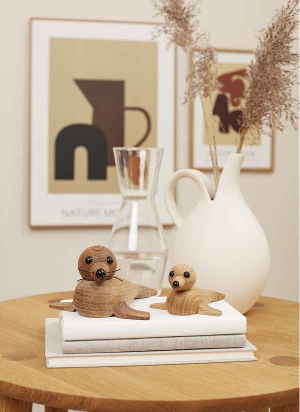 Seal Pup ist eine charmante, dekorative Robbe aus Eichenholz, die mit ihrem minimalistischen dänischen Design unendliche Ausdrucksmöglichkeiten bietet. Durch das Neigen des Kopfes in verschiedene Richtungen verleiht sie Ihrer Einrichtung eine spielerische Note. Seal Pup inspiriert als Dekoration jedes Zuhause und ist eine ideale Geschenkidee für Gastgeber oder Gastgeberinnen. Es gibt sie in zwei Größen – Seal Cow und Seal Pup – beide handgefertigt aus Eichenholz.