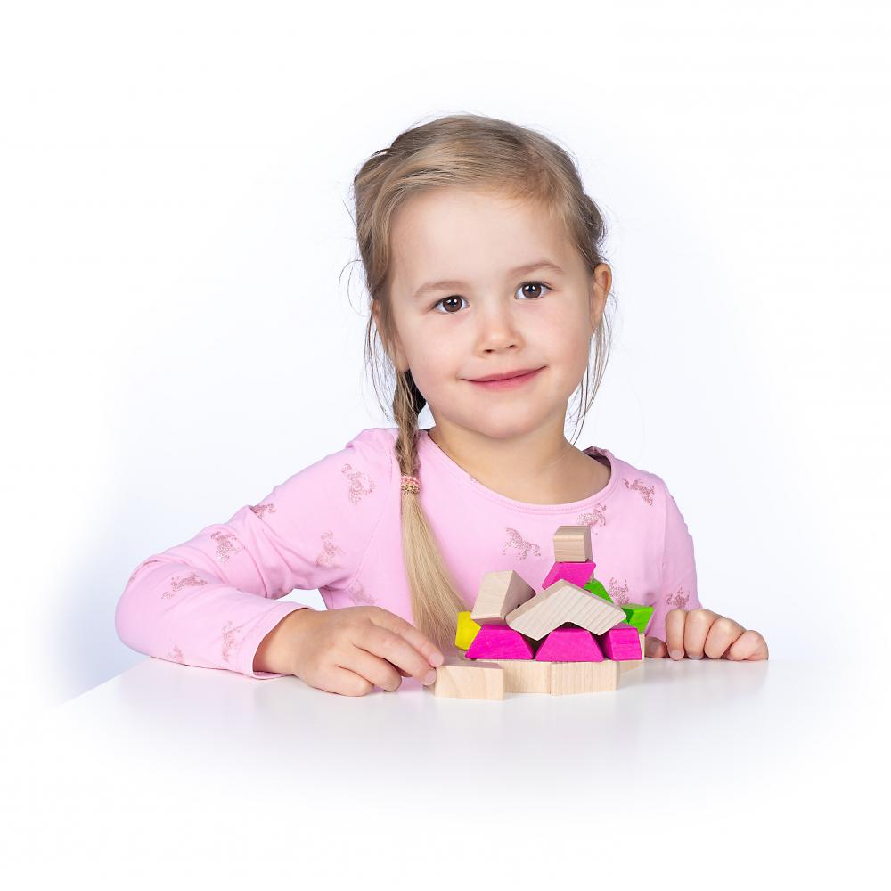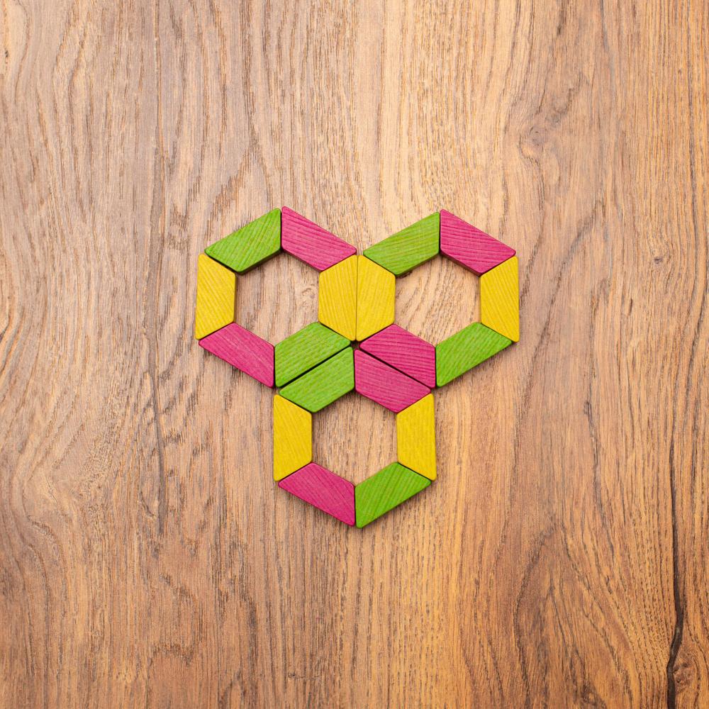 Das Set enthält 48 Bausteine in drei verschiedenen Formen, die alle auf einem gleichschenkligen Dreieck basieren – ergänzt durch ein Leporello mit inspirierenden Lege- und Baubeispielen. Dank ihrer besonderen Geometrie lassen sich die Steine intuitiv zusammenfügen oder gezielt kombinieren. So entstehen jedes Mal neue, faszinierende Bauwerke – spielerisch, kreativ und individuell. Mit GeoBlox werden Kinder zu kleinen Architekten und Künstlern.