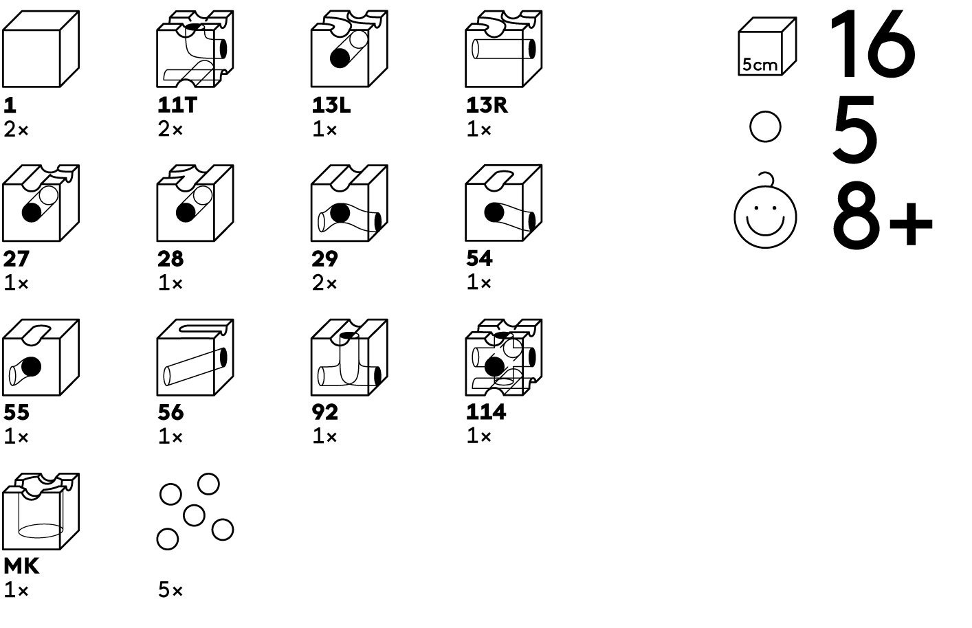 Achtung! Nicht für Kinder unter 36 Monaten geeignet. Kleine Kugeln. Erstickungsgefahr.