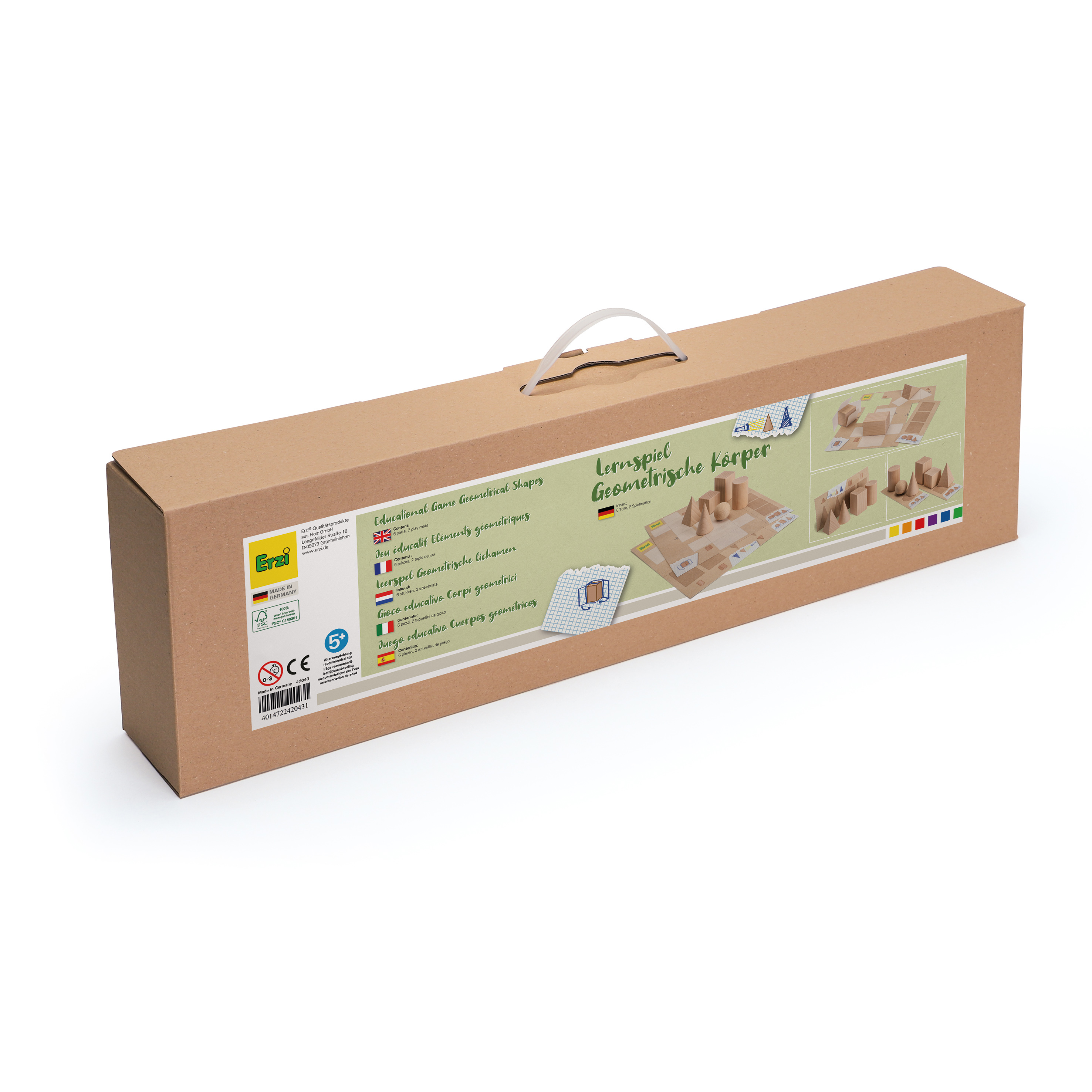Die geometrischen Körper bestehen aus massivem Buchenholz und haben eine Höhe von 10 oder 6 cm sowie eine Seitenlänge oder einen Durchmesser von 6 cm. Durch das Tasten und Befühlen der Körper können den jeweiligen Formen entsprechende Eigenschaften zugeordnet werden.
