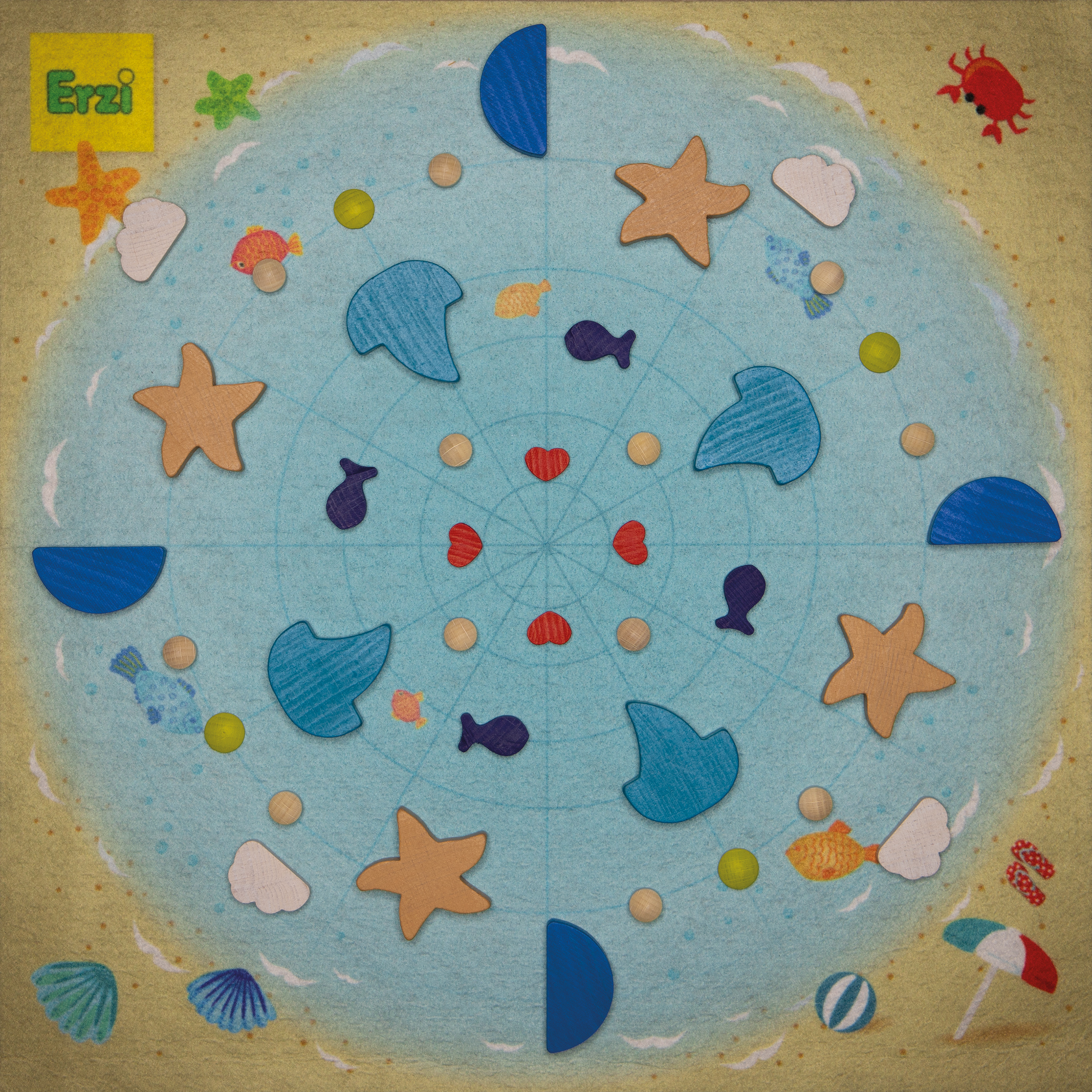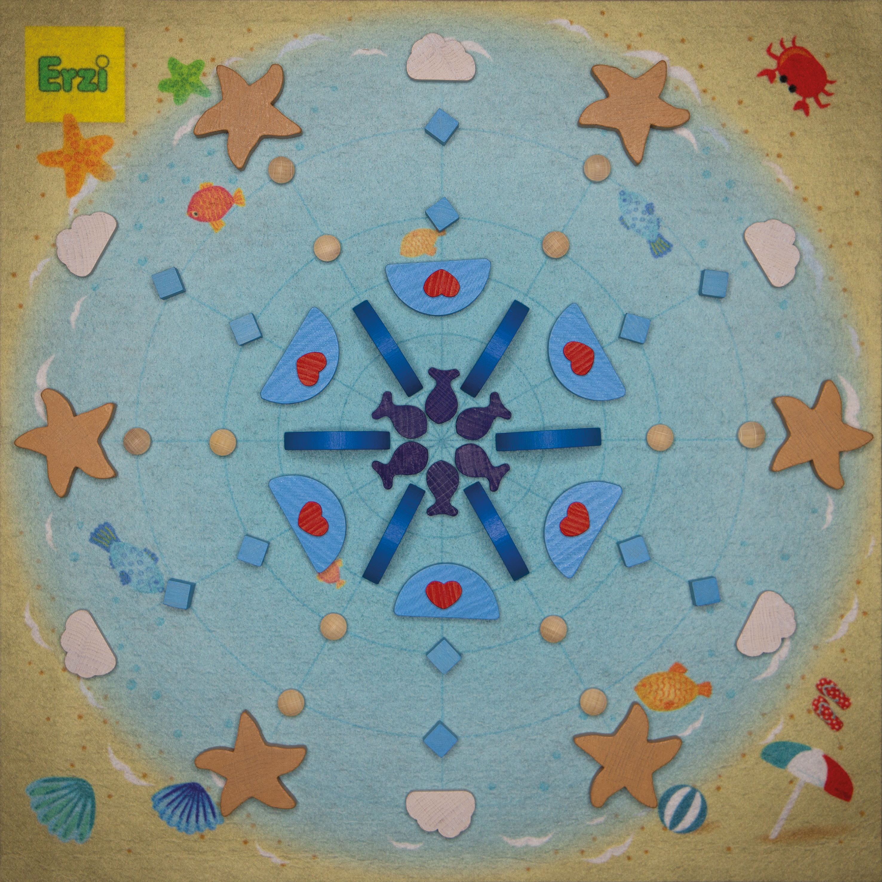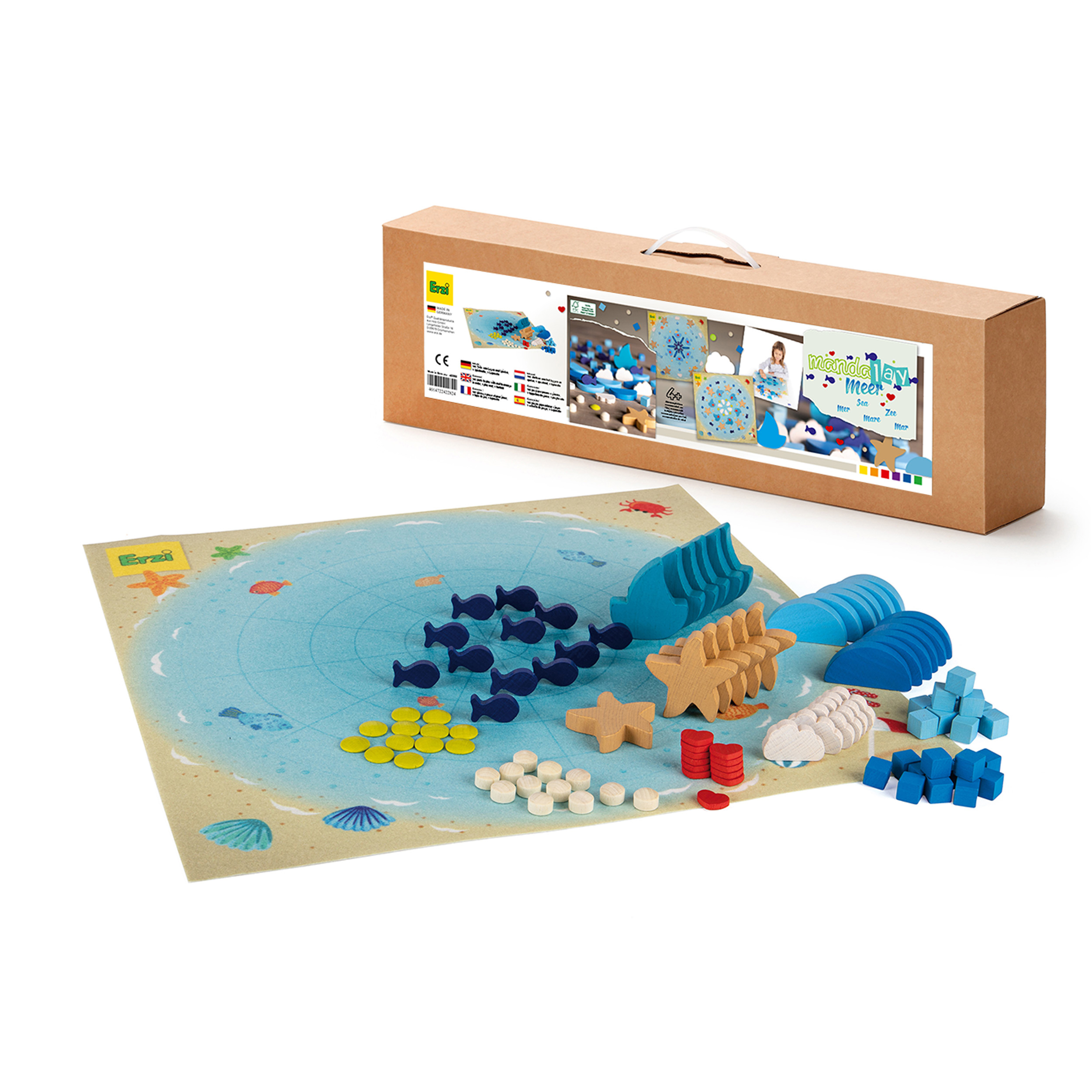 Unsere Mandalays sind vielseitige Spielzeuge, die Kinder zum Legen, Stapeln, Arrangieren, Kombinieren, Zählen und Sortieren einladen. Sie sind in verschiedenen Formen und fröhlichen Farben erhältlich und ermöglichen endloses Gestalten von Mandalas. Das Set enthält eine bunt gestaltete Spielmatte mit einem Liniennetz, das beim gleichmässigen Auflegen hilft. Mit den niedlichen Figuren können auch Strand- und Meereslandschaften kreiert werden, was die Kreativität und das freie Spiel der Kinder fördert. Die Mandalas sind pädagogisch wertvoll und bieten stundenlangen Spielspass.102 Teile zum Legen und Spielen, 1 Spielmatte, farbig bedruckt (40 x 40 cm), 1 Leporello