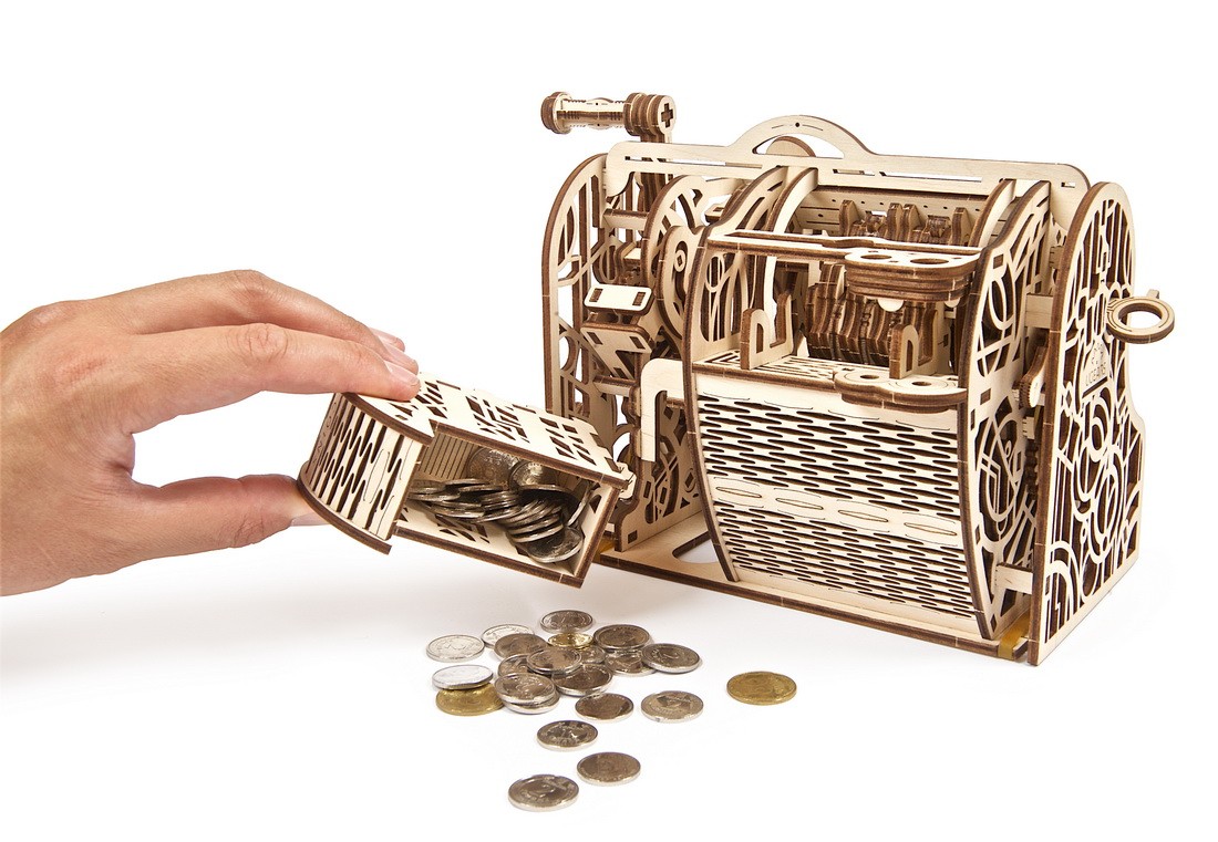 Wir wissen alle, dass die wirklichen Werte im Leben sich nicht mit Geld aufwiegen lassen. Aber wenn Sie nicht wissen, wo Sie Ihr Bargeld aufbewahren sollen, hat Ugears etwas für Sie: die mechanische Spardose, die Registrierkasse.