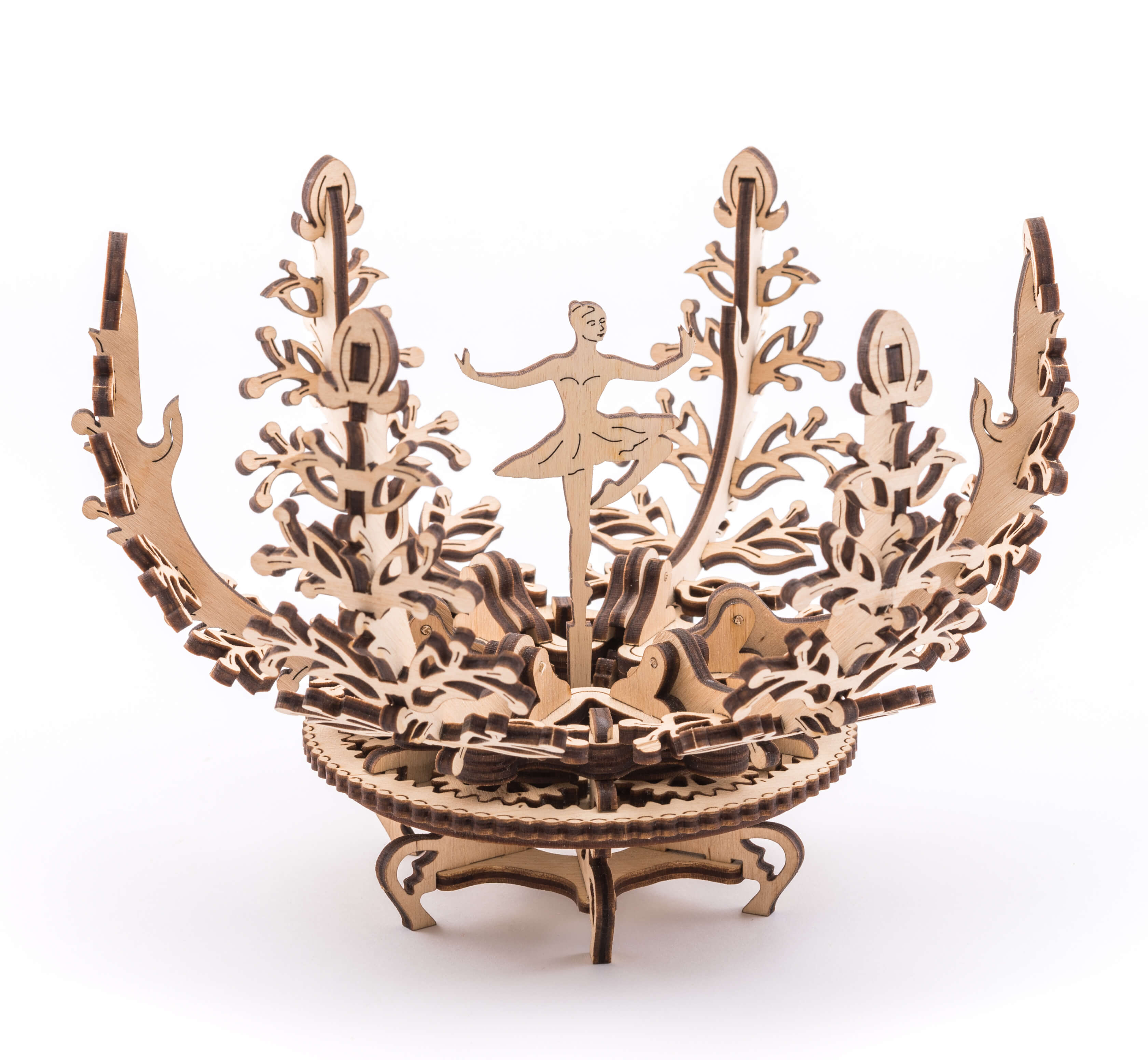 Entdecken Sie die kreative Geschenkidee für Ihre Liebsten: das Blumen-Etui von Ugears. Dieses elegante Modell besticht durch seine filigranen Blütenblätter, eine Ballerina und einen Glücksbaum im Inneren. Durch Drehen des Rings am Sockel öffnen sich die Blütenblätter, und durch weiteres Drehen schliessen sie sich wieder.