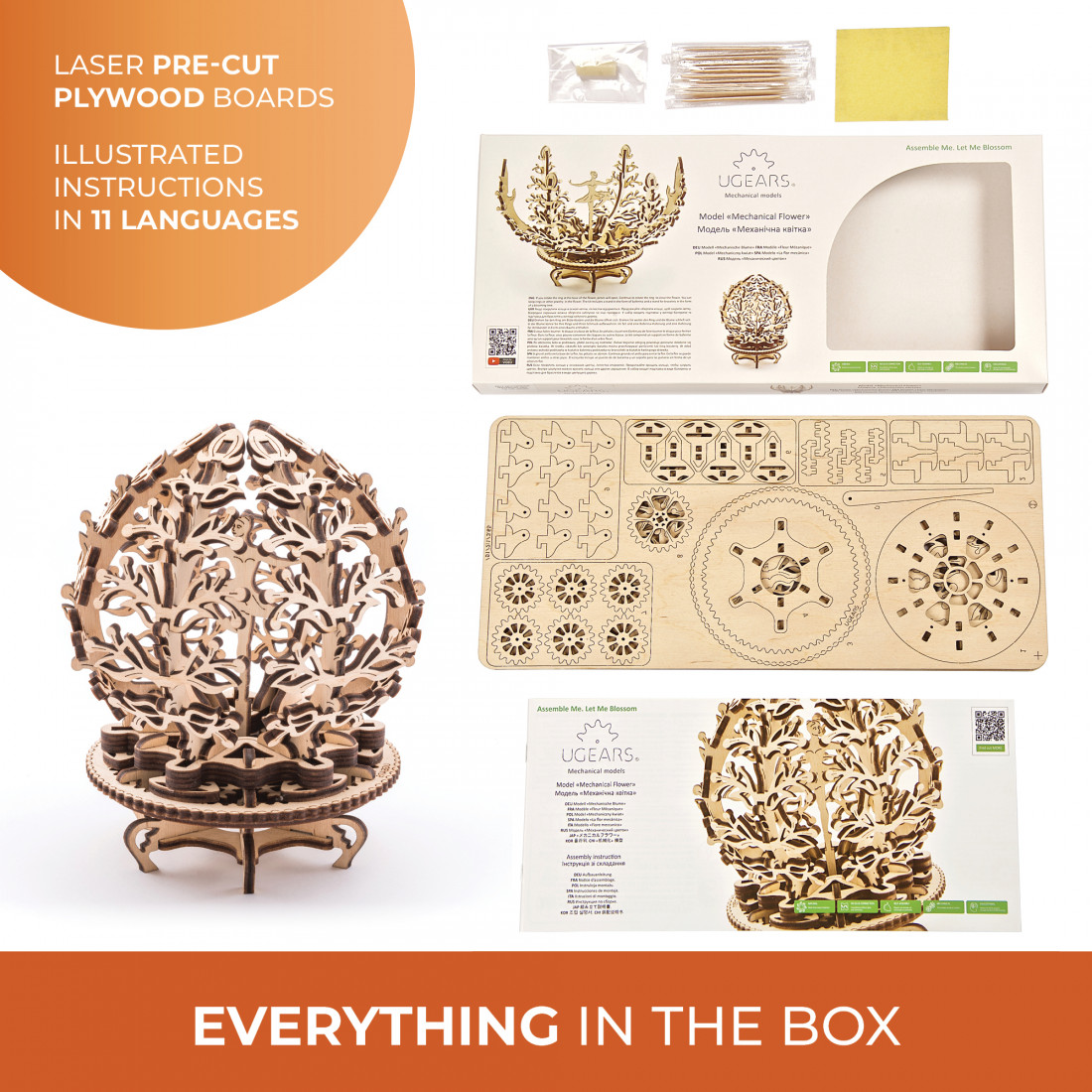 Wie alle Ugears Modelle wird auch dieses ohne Kleber zusammengesetzt, was den Aufbau besonders einfach und sauber macht. Das Blumen-Etui ist nicht nur ein Aufbewahrungsort, sondern auch ein dekoratives Schmuckstück. Es eignet sich perfekt als besonderes Geschenk für Freunde und Familie. Mit seiner liebevollen Gestaltung und dem praktischen Nutzen wird es garantiert für Begeisterung sorgen.