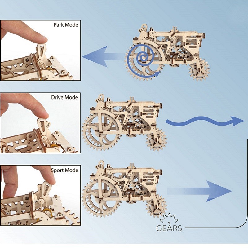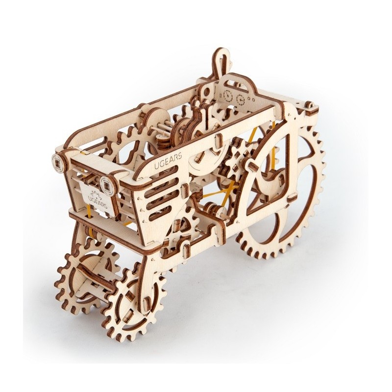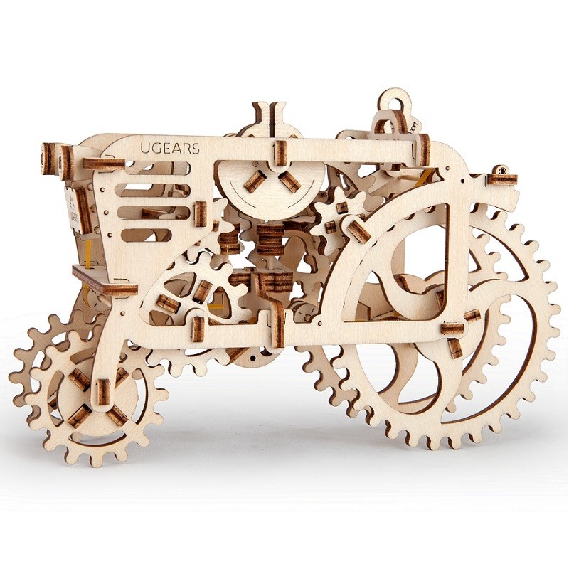 Der Traktor von UGEARS ist ein nostalgischer Gruss an vergangene Zeiten, als Maschinen noch ohne Elektronik auskamen. Dieses Modell besteht ausschliesslich aus Sperrholz und wird von einem Gummimotor angetrieben, der jede Menge Spass verspricht. Ein besonderes Highlight ist die funktionierende Schaltung des Traktors. Sie können den Traktor aus der Parkstellung in den ersten Gang schalten, um symbolisch Ihr Feld für die Frühjahrsaussaat zu pflügen. Wenn Sie den Traktor in den Sportgang schalten, fährt er mit voller Geschwindigkeit davon, bis er das Ende des Feldes erreicht hat.