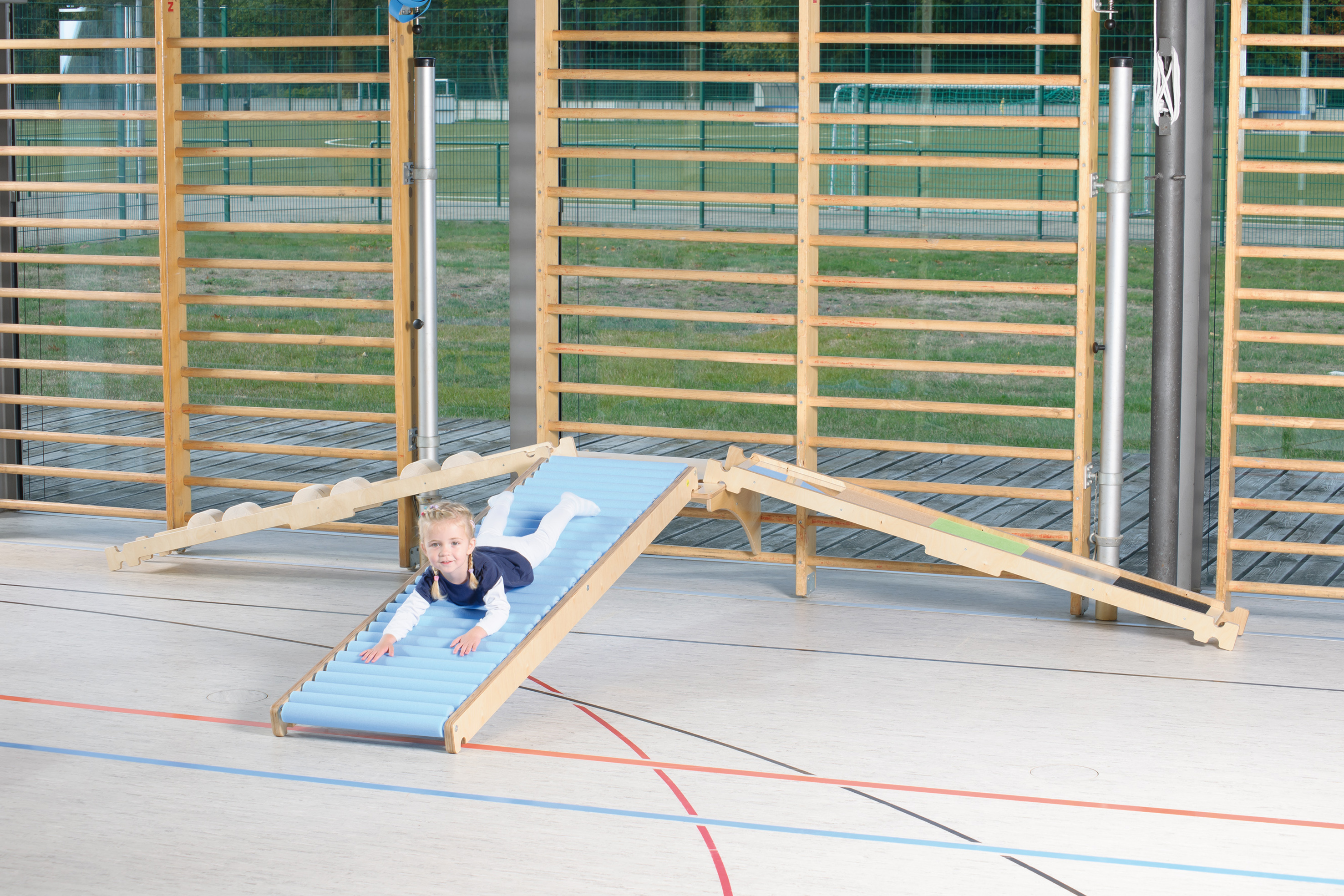 Inhalt: 44488 Podest Sprossenwand, 44464 Rollenrutsche, 46381 Balancierbret Äste, 46383 Balancierbrett Materialmix