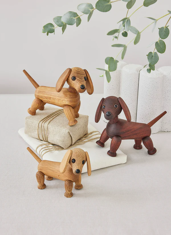 Haben Sie Platz in Ihrem Herzen und Zuhause für Quick, den charmanten Dackel aus Mahagoni? Mit viel Liebe und künstlerischem Einfallsreichtum von Chresten Sommer gestaltet, ist Quick mehr als nur ein Geschenk – er ist eine Hommage an Treue und bedingungslose Freundschaft. Vom langen Körper über die langen Ohren bis hin zum spitzen Schwanz fängt jedes Detail die unverwechselbare Schönheit des Dackels perfekt ein.