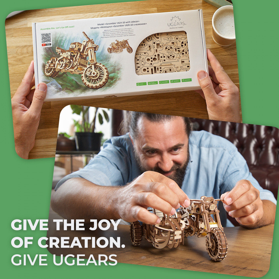 Die Ugears Scrambler UGR-10 ist ein fantastisches Geschenk für Motorrad-Enthusiasten und Modellbauer. Sie eignet sich ideal für Geburtstage, Weihnachten oder einfach als besondere Überraschung. Bauen Sie das Modell selbst zusammen und schenken Sie es als persönliches Geschenk oder legen Sie kleine Überraschungen in den Beiwagen. Egal, ob als Geschenk oder für sich selbst – diese Scrambler ist Ihre Fahrkarte ins Abenteuer und ein Highlight für jede Sammlung.