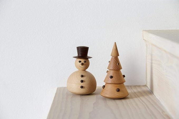 Der Schneemann wird in Handarbeit aus Buche und Thermoesche hergestellt. Der Schneemann ist ein einzigartiges, handgefertigtes und handmontiertes Produkt aus Holz, das von Produkt zu Produkt geringfügige Abweichungen aufweisen kann. Reinigen Sie ihn mit einem feuchten Tuch. Für eine bessere Oberfläche und Wartung verwenden Sie gelegentlich Bienenwachs auf alle unsere Holzprodukte.