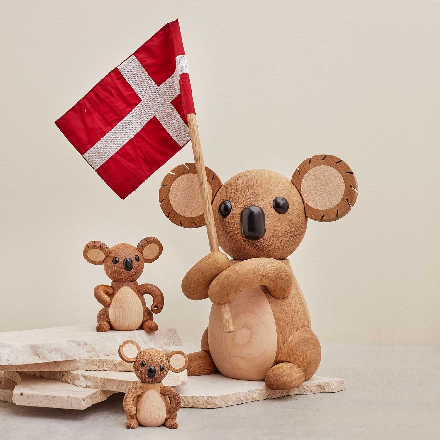 Die niedliche Koala-Figur Victoria, entworfen von Chresten Sommer, kommt in einer grösseren Ausführung. Ihre beweglichen Arme, Ohren und der Kopf ermöglichen es dir, ihren Ausdruck individuell anzupassen. Sie wird sogar mit einer kleinen dänischen Flagge geliefert, die sie halten kann – perfekt, um Geburtstage und besondere Anlässe zu feiern.